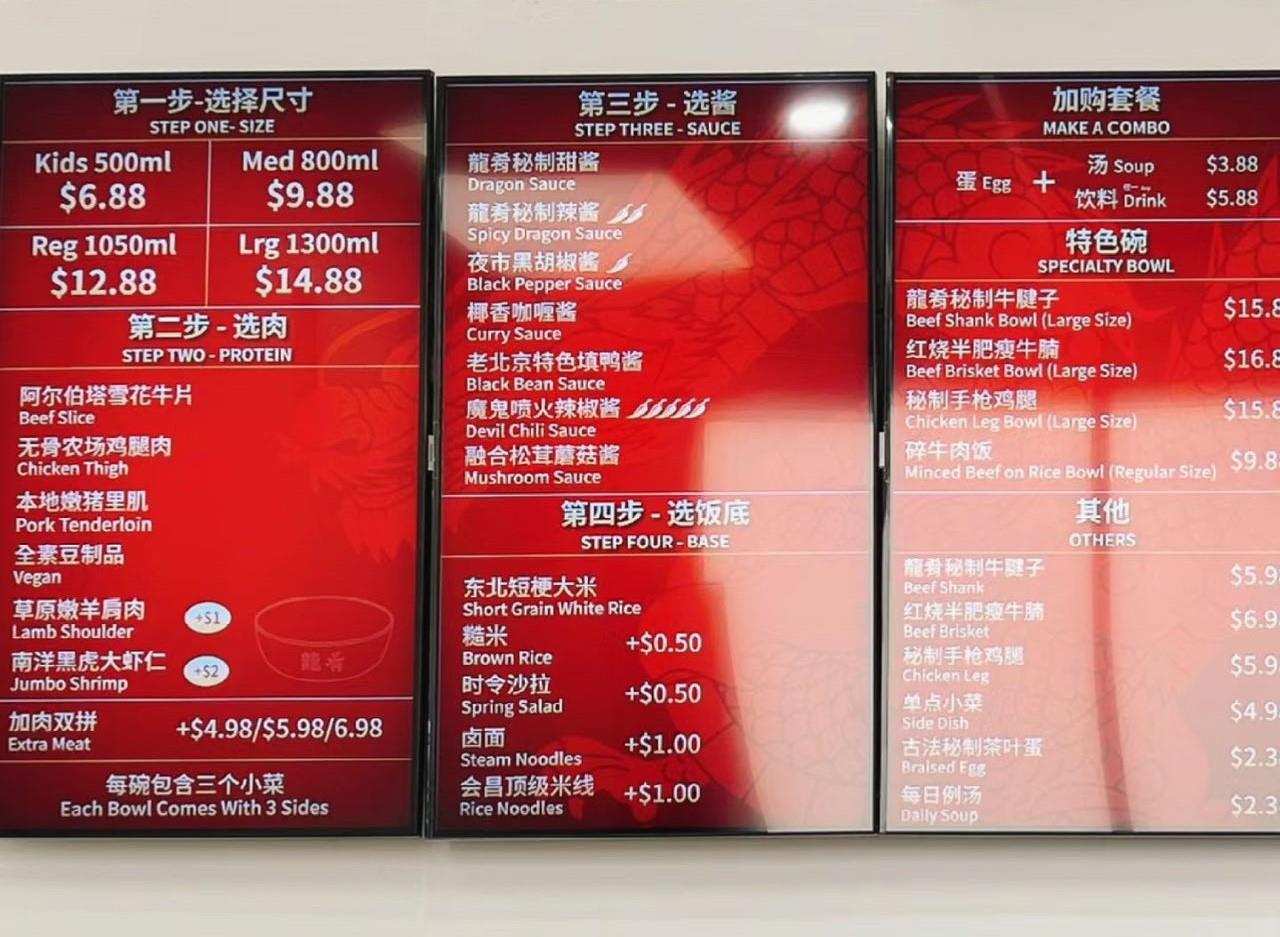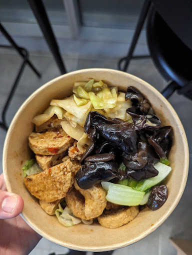 Dragon Bowl is a fast-casual Chinese restaurant offering customizable bowls with a focus on healthy and affordable meals. Guests can build their own bowl by selecting a protein such as beef brisket, pistol chicken leg, or shrimp brisket; a base like white rice, brown rice, noodles, or salad; and a sauce including options like Dragon Sauce, Curry Sauce, or Black Bean Sauce. Each bowl comes with a choice of three sides, such as shredded potatoes, bean sprouts, or lotus roots, and can be complemented with add-ons like a braised egg. The restaurant also offers a variety of drinks, including milk teas and slushes. With its modern interior and efficient service, Dragon Bowl provides a convenient dining experience for those seeking nutritious and flavorful meals.