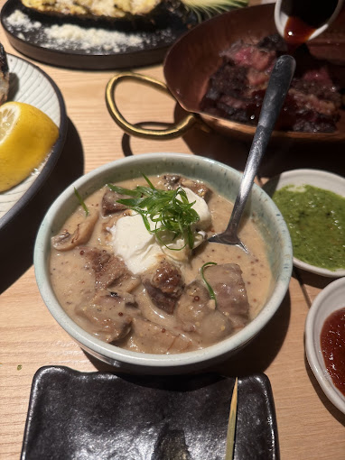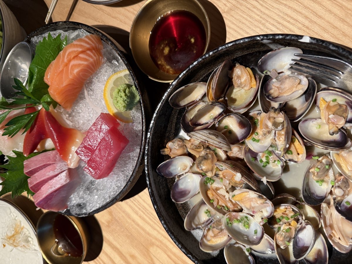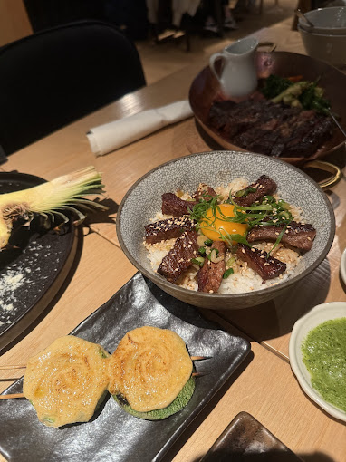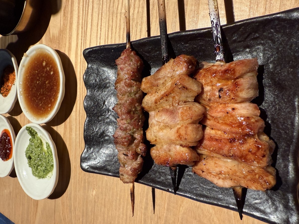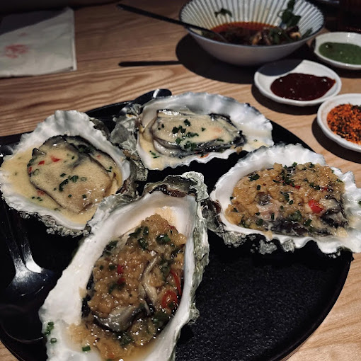 Myth Grill & Yakitori Bistro is a contemporary Japanese izakaya nestled in Richmond. The restaurant offers an extensive menu featuring charcoal-grilled yakitori skewers, including options like Angus short ribs, premium beef tongue, and chicken thigh. Complementing the skewers are a variety of hot and cold dishes such as spicy stir-fried chicken gizzards, baby clams in white wine sauce, and charred Brussels sprouts with miso mayo. For those seeking hearty meals, the bistro serves rice and noodle dishes like Malaysian prawn stir-fried rice noodles and seafood linguini in squid ink sauce. Dessert offerings include unique treats like charcoal-grilled Japanese sweet potato with custard sauce.