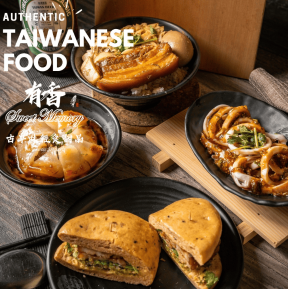 Combines savoury Taiwanese street‑food combos with dessert and drink