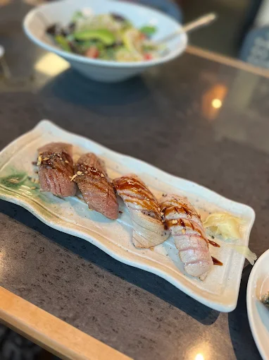 Their menu is very rich. I even saw six small sushi rolls for three dollars. It's a super deal. Avocado mango sushi/foie gras sushi/pikouma sushi 8.5/10 Can you believe that foie gras sushi costs more than ten dollars? Their ingredients and presentation are all very good. The toppings are all delicious. Unfortunately, the rice underneath is a bit sticky. I personally think it's okay, but it's not what my friend likes. Beef Sukiyaki 7.5/10. The ingredients are very sufficient, with plenty of beef, oyster mushrooms, konjac noodles, and cabbage. The soup base is a bit light and sweet. I personally think it's good, but the beef is obviously overcooked, so I deducted a few points. Tempura set 10/10. It's fried deliciously and not greasy at all. The soba noodle soup is also iced. It has a refreshing and smooth taste. I highly recommend it. Flying fish roe fried rice 8/10. There is still a lot of fish and it has a wok flavor. I personally think it's a little oily. My friend thinks it's okay. Overall, it feels okay. In terms of service, I feel that the guy is very hardworking. He has to take care of 8 tables of guests by himself. However, his service is much better than some other restaurants with the same price. He comes to add water from time to time and ask how the food is. I can feel that he is working hard to improve. Generally speaking, their main value for money is the price range of 20-30, which is more suitable for daily meals.