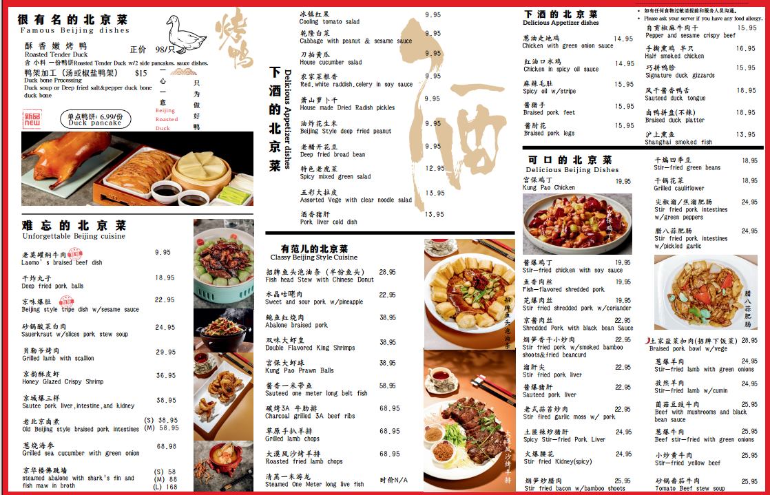 Beijing BBQ Duck Restaurant specializes in traditional Beijing roast duck, aiming for crispy skin and tender meat served with thin pancakes, scallions, and sweet bean sauce. Beyond duck, the menu includes northern-style dishes like spicy chicken, charcoal grilled lamb leg, crab-roe tofu soup, and more—making it a full Chinese BBQ & banquet option.