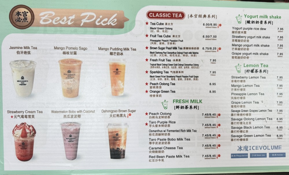 BenGong’s Tea (Burnaby) is located at 5308 Grimmer Street. This boutique tea shop centers around a “Every sip is original tea” philosophy, combining premium teas from Taiwan, Wuyi, Guizhou with handmade pearls and seasonal fruit. Signature drinks include Dahongpao Brown Sugar Pearl Milk Tea, Osmanthus Oolong Pearl, avocado / mango tea blends, etc. Known for its balance between tea aroma and refined flavor.