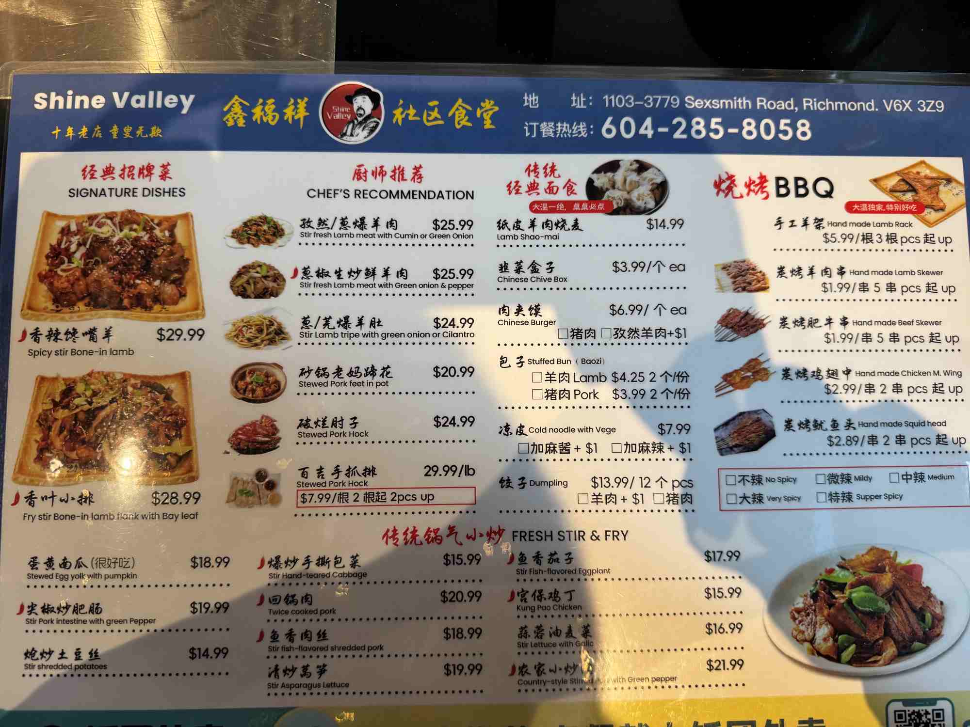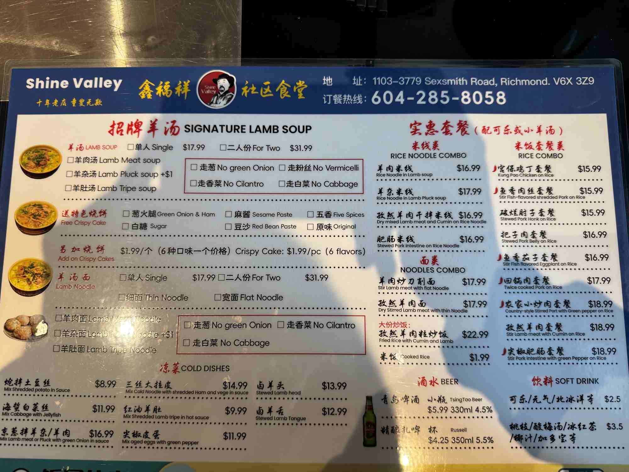Shine Valley Lamb Soup, family-run in Richmond, serves up authentic Northeastern Chinese lamb soup and smoky skewers. Broth is clean yet rich, paired with vermicelli and greens; skewers are well-seasoned and juicy. Offering lamb dumplings, “yang za” offal soup, and traditional flatbreads too. Generous portions, warm service, and a casual, cozy atmosphere make it ideal for sharing with friends or family, especially on chilly days