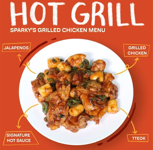 Sparky Chicken is a Korean fried-chicken spot on Fraser Street in Vancouver that prioritizes fresh ingredients, a variety of signature sauces, and offers both classic bone-in fried chicken and grilled chicken options. Each order comes with pickled radish and rice cake (tteok), delivering joy with every bite.